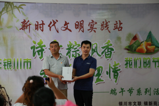 “我们的节日˙端午” 6月24日,市文联组织文艺小分队来到金凤区银新苑北社区,以“我们的节日——诗意粽飘香 和谐邻里情”为主题,开展了小型诗文朗诵、文艺表演、包粽子等系列活动,别开生面的节日活动受到了社区群众的欢迎和好评。同时,向社区捐赠了《银川市文学艺术精品丛书》、《家风家训选编》、《黄河文学》等500余册图书,引导广大群众进一步了解传统节日,激发爱国热情,树立热爱祖国、热爱人民、热爱中华民族的坚定信念。