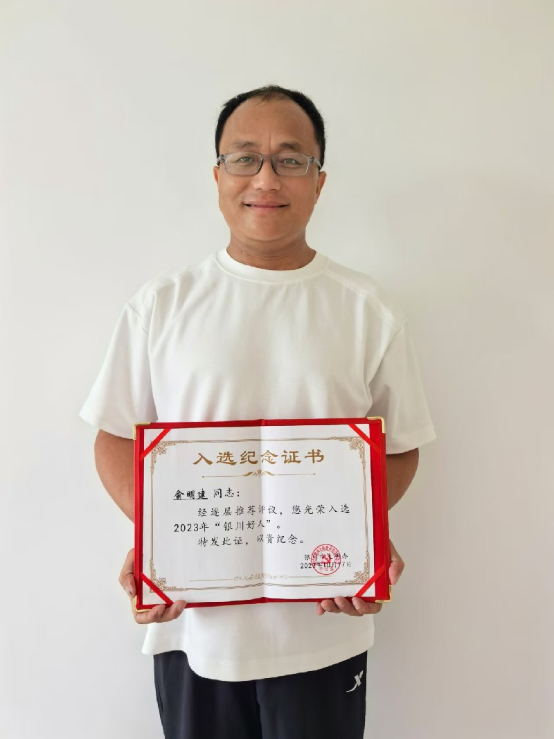 就是这样,多年来,俞明建凭借自己的勤奋和诚信赢得了越来越多的客户信赖;凭借自己的善良和热忱,赢得了越来越多朋友的支持和认可。2023年,他被银川市委宣传部文明办评为“2023银川好人”、金凤区文明委评为第八届“最美金凤人”。在他的影响下,女儿也开始热心做公益,经常跟他一起去参加公益活动。他们一家人,也被金凤区评为“文明家庭”“最美家庭”。获奖之后,他还主动对接街道,把获奖资金直接用于慰问辖区困难群众,希望他们能积极面对困难,迎接更加美好的明天。