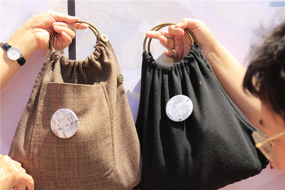 做好的包包,配上韩美林的小动物挂饰,颇具艺术气息。出门买菜提着“艺术小包”,肯定时尚、好看又环保。