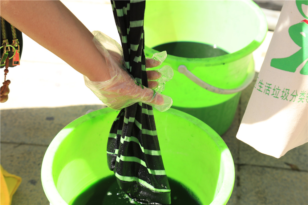3、厨余植物染料进行扎染 染色颜料你们一定猜不到,竟然是洋葱皮和削除的胡萝卜皮,都是大家常见的厨余垃圾。
