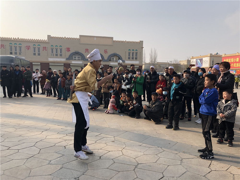 初冬微寒,在永宁县闽宁镇镇政府广场上,一场文艺大戏火热上演。演出以热闹的舞蹈《大丰收》开场,赢得福宁村村民的阵阵掌声。