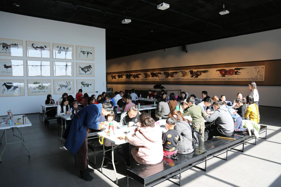 艺术馆特意邀请到宁夏隆德齐家剪纸传承人齐立娟、陈晓颖二位老师来馆讲授关于剪纸的知识和技巧,并现场结合韩美林“新年新作”,带着小朋友们一起,将韩美林先生的水墨动物用剪纸艺术表现出来。