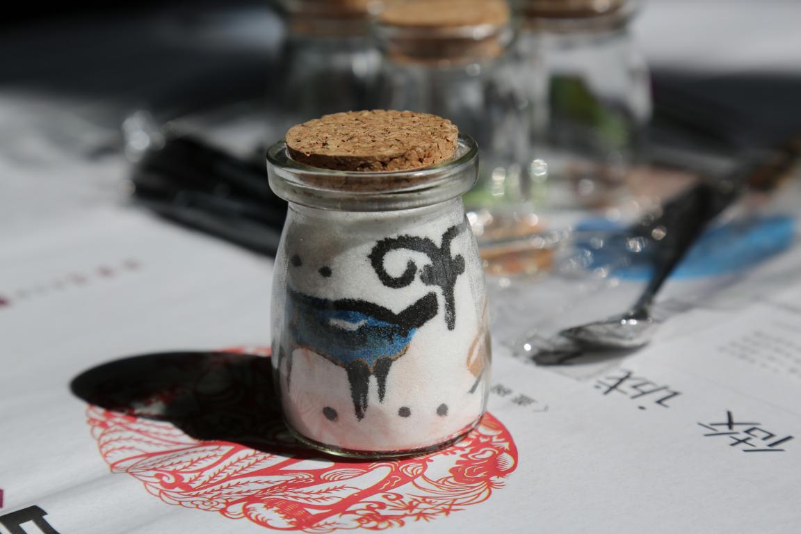 艺术馆邀请沙画老师陈逸飞、沙画瓶老师陈浩强、张腾做客艺术馆,量身定制韩美林艺术沙画表演,同时指导大家做沙画瓶,带大家走进“沙艺”的海洋。