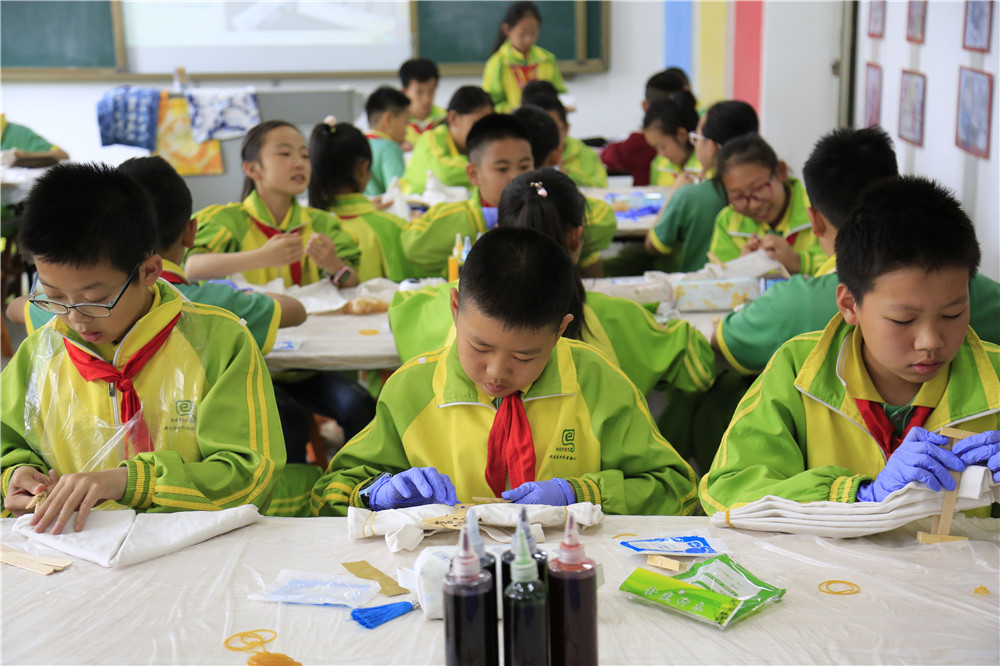 宁夏非遗传承人胡婷婷、齐立娟,将糖画、剪纸、扎染“非遗”课程送进校园,扎染、糖画、剪纸,三堂美林艺术课同时开讲,掀起校园非遗热潮