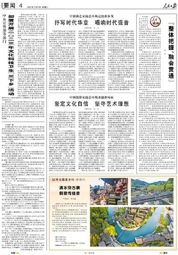 5月9日,《人民日报》要闻版刊发题为《中国摄影家协会不断开创新局面 坚定文化自信 坚守艺术理想》的文章。文章指出,中国摄影家协会第九次全国代表大会以来,中国摄协坚持“二为”方向和“双百”方针,坚持创造性转化、创新性发展,自觉承担起举旗帜、聚民心、育新人、兴文化、展形象的使命任务,积极发挥组织优势和专业优势,团结带领广大摄影工作者,坚定文化自信、坚守艺术理想,为繁荣发展社会主义文艺事业作出了新的贡献。全文如下:
