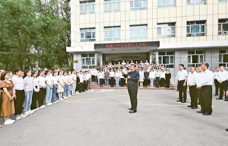 2022年7月12日至15日,中共中央总书记、国家主席、中央军委主席习近平在新疆考察。这是12日下午,习近平在新疆大学考察时,同师生们亲切交流。