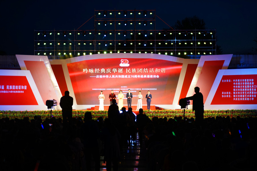本报讯(记者 李阳阳)9月23日,由中共银川市委宣传部、市委统战部、市直属机关工作委员会、市民族事务委员会主办,市文学艺术界联合会承办的“吟咏经典庆华诞民族团结话和谐——庆祝中华人民共和国成立70周年经典诵读诗会”在银川市人民广场举行。当天,市直机关干部职工、市民等1000多人参加了活动。