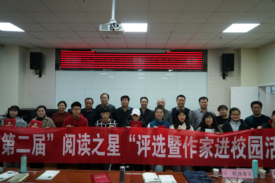 12月18日下午,由银川市文联与宁夏大学人文学院联合主办,《黄河文学》编辑部、银川市作协、文艺志愿者协会、文艺评论家协会等单位联合承办的第二届“阅读之星”评选暨作家进校园”活动于宁夏大学贺兰山校区文荟楼309会议室顺利举行。本次活动由宁夏大学人文学院副院长王岩森教授主持,银川市文联党组书记张秉东、文联秘书长李德超,宁夏作协秘书长闫宏伟、文艺评论家协会秘书长王晓静,著名作家漠月、李金瓯、火会亮、杨建虎、计虹以及宁夏大学人文学院18、19级学生代表参加。