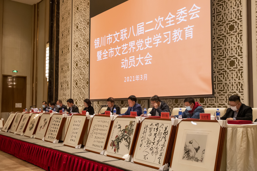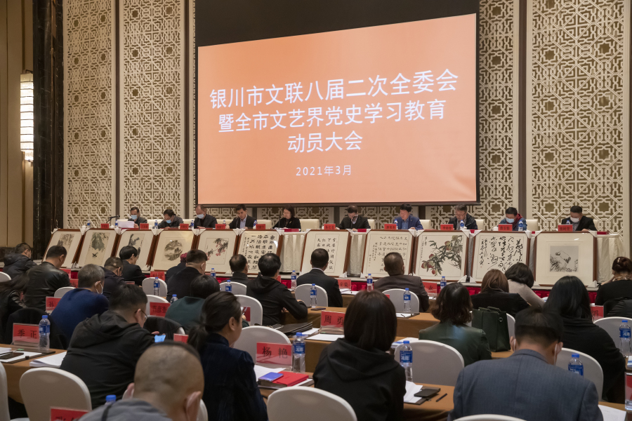 2021年3月11日,银川市文联八届二次全委会暨全市文艺界党史学习教育动员大会在银川召开。会议传达学习了区市两会精神和上级文联全委会精神,总结部署了年度工作,表彰了2020年度文联系统先进集体和个人,并对党史学习教育进行了动员。