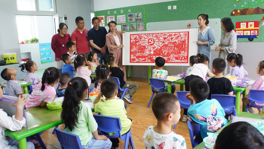 民间艺术是中华优秀传统文化的重要组成部分,更是校园文化的重要源泉和基础。把民间艺术引进校园,不仅是对民间艺术的传承和发扬,也是创建特色校园文化的重要内容,园长白社丽带领大家参观了园里的文化建设,教师的建党主题剪纸作品、孩子们的手工编织展示墙丰富多彩,童心向党,政治性和艺术性相得益彰,让我们看到了中华优秀传统文化在幼儿园全面普及的重要性。