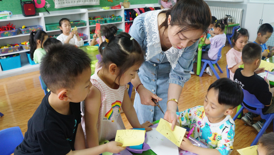 民间艺术家在教室里向孩子们展示了民间文艺技艺,并给大家讲解了民间文艺知识。剪纸老师王丽为孩子们带来了中华传统文化——剪纸。一把普通的剪刀,一张薄薄的红纸,在巧手和纸张的相互成就中,诞生出一幅幅鲜活的作品。绳结老师樊小兰现场给孩子们准备了很漂亮的五彩绳,详细讲述介绍编织技巧,精美的款式、巧妙的编织手法让在场孩子学习热情空前高涨。活字印刷老师陈思莹介绍了活字印刷术和具体流程,并向孩子们示范操作,在活字印刷的实际操作过程中,孩子们分小组进行、配合默契。你擦墨、我压纸、他滚刷,一次比一次印得清晰。让孩子们用双手感受到民间文艺的温度,触摸跨越千年的记忆,也为“六一儿童节”锦上添花。