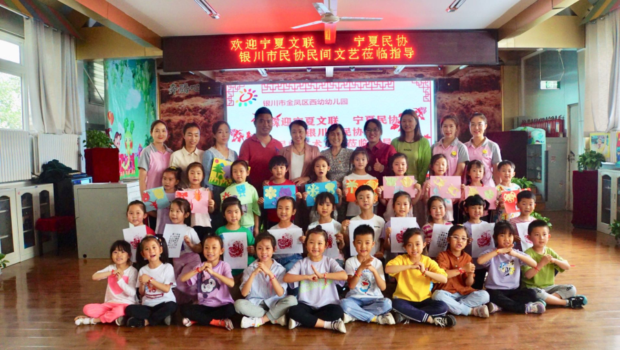 为庆祝中国共产党成立100周年,深化党史学习教育,增强文化自信,传承弘扬优秀传统文化,积极响应宁夏文联、宁夏民间文艺家协会倡议,5月31日上午,银川市民间文艺家协会主席李剑带领部分艺术家走进银川市金凤区西幼幼儿园开展“赓续传统文化 根植爱党情怀”——民间文艺进校园活动。宁夏民协主席刘伟、副主席兼秘书长徐娟梅莅临现场进行观摩指导。
