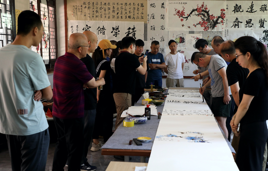 6月12日上午,银川市书法家协会在宁夏亘利建筑工程有限公司开展了“学习党史 感怀党恩 端午雅集”书法进企业主题活动。我会名誉主席陈国鸿、主席刘银安、常务副主席关宁国、副主席郭鸿光、席恒、屈子强、副主席兼秘书长雷长林、理事于国伟、王浩、李开荣参加了此次活动。