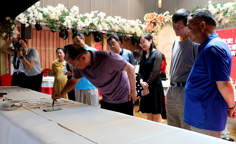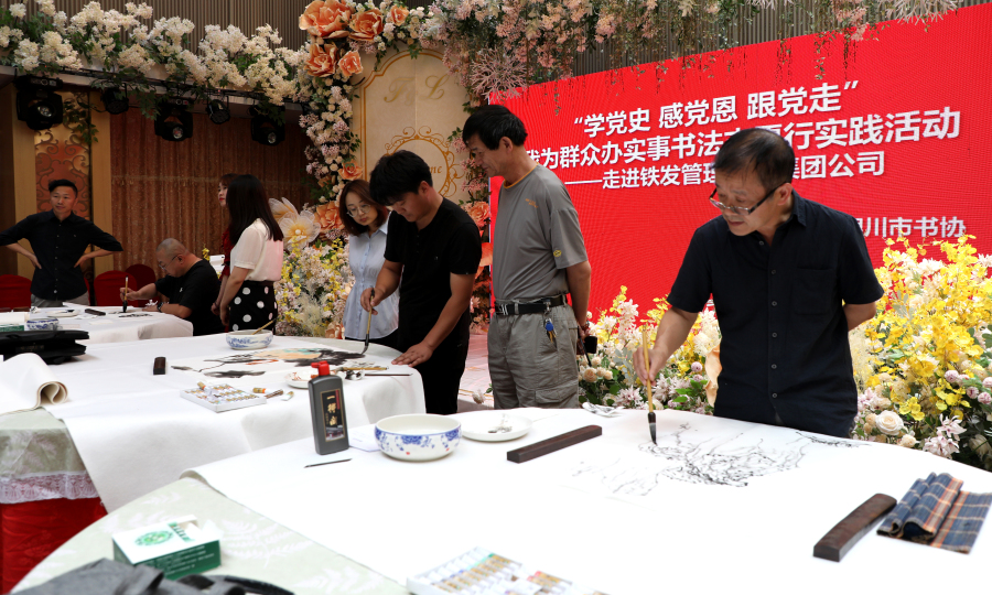 为庆祝建党100周年,充分抒发对党的感恩情怀,6月18日,银川书协主席刘银安带队,一行九人走进铁发管理咨询集团,开展“学党史、感党恩、跟党走”我为群众办实事书法志愿行实践活动。