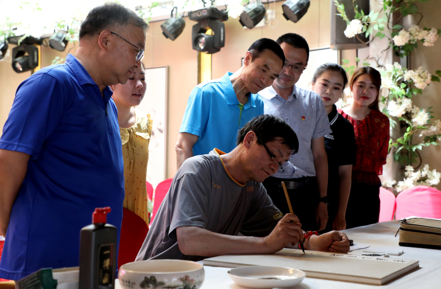 活动现场,书画家们饱含激情、挥毫泼墨,创作作品近百幅,一幅幅感念党恩、歌颂祖国、祝福企业的字画跃然纸上,创作现场掌声不断,赢得企业员工的高度赞誉。