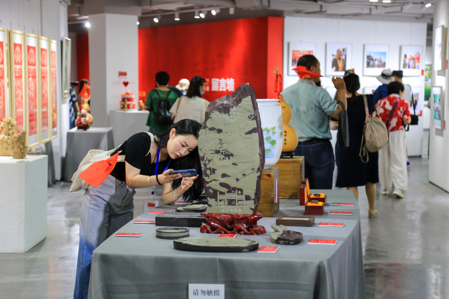 此次展出的作品是摄影和民间艺术作品专场。展览自征稿以来,全市文艺工作者积极采风创作、尽献绝诣,件件力作融思想性、艺术性、教育性为一体,充分表达了对党和祖国的赞美之情、感恩之情,深情描绘了党的光辉历史与丰功伟绩。广大摄影工作者和爱好者用手中的相机记录时代变迁、幸福生活、环境变化、生态恢复、工业强国、脱贫攻坚和乡村振兴珍贵影像,摄影作品主题鲜明、视角多样,还原厚重的时代变迁,再现我党执政百年来取得的辉煌成就,从老百姓的衣、食、住、行等,感受祖国日益繁荣,带给大家的幸福生活,浓缩了银川市百年来的光影故事;民间艺术作品以主题鲜明,内容丰富,生动传神的一幅幅作品表达对党的祝福,以艺术的形式传扬红色经典,留驻岁月回响,凝聚奋进力量,续写华丽乐章。《辉煌的历程》《脱贫攻坚 乡村振兴》等剪纸作品线条流畅、栩栩如生。《六盘山上高峰》《圆梦闽宁镇》等雕刻作品随色赋形、圆润细腻。《送军粮》《做军鞋》《唱支山歌给党听》等泥塑作品独具匠心、惟妙惟肖。《秀美宁夏》《一心向党一路向前》《三牛精神》《丰衣足食》等陶瓷、灯饰、烙画、编织作品工艺精湛、意蕴厚重。