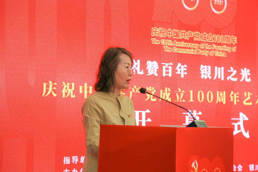 6月30日上午,为庆祝伟大的中国共产党百年华诞,回顾党的光辉历程,弘扬党的优良传统,歌颂党的丰功伟绩,开启“十四五”文艺发展新征程,向建党百年献礼,由中共银川市委党史教育领导小组办公室指导,中共银川市委宣传部、银川市文联、银川市新闻传媒集团共同举办的“礼赞百年·银川之光”——庆祝中国共产党成立100周年艺术作品展在贺兰山美术馆开幕。