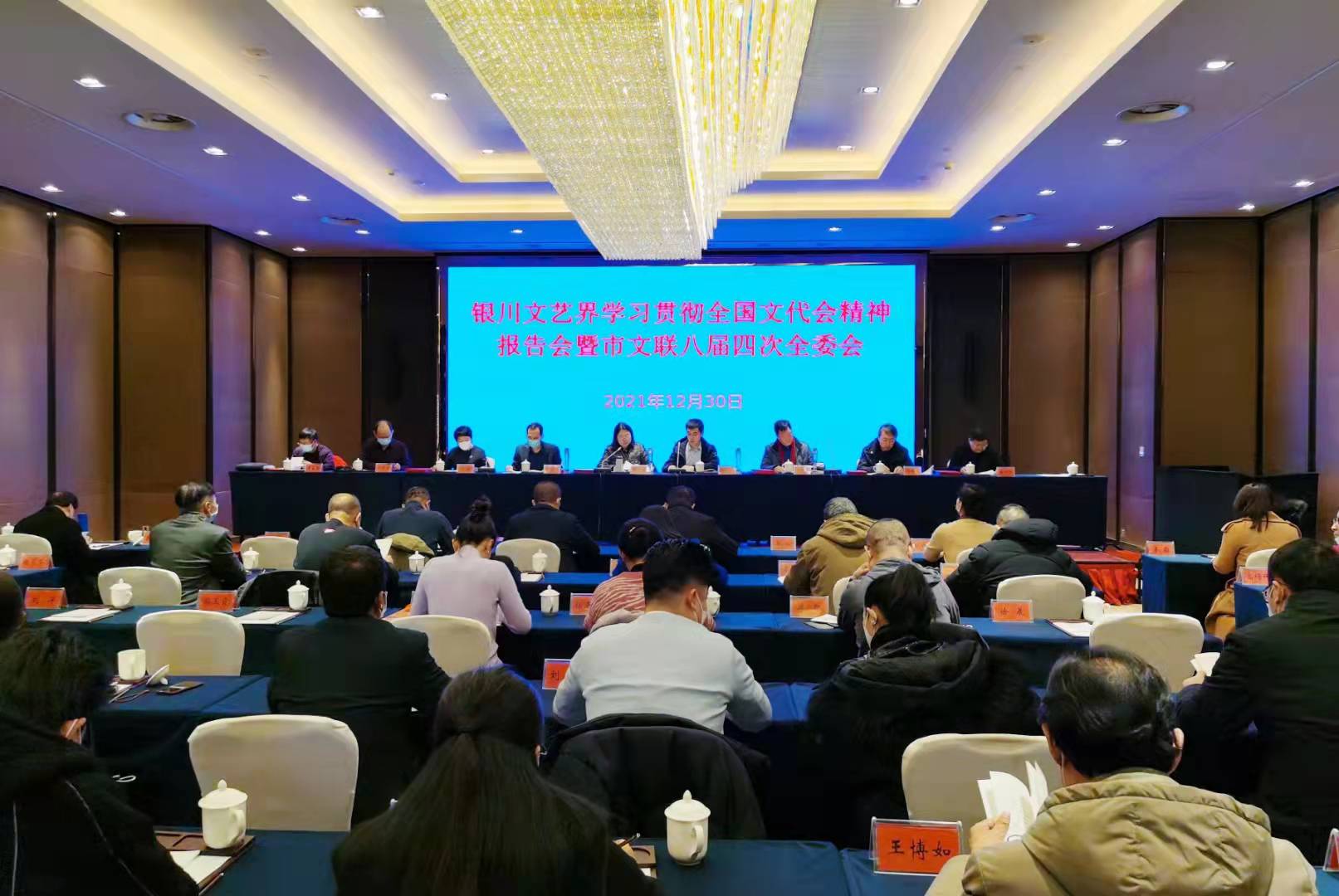 2021年12月30日,银川文艺界学习贯彻全国文代会精神报告会暨市文联八届四次全委会在银川召开。会议传达学习了全国第十一次文代会、第十次作代会精神,审议主席团成员职务任免,总结文联2021年工作,安排部署2022年工作。