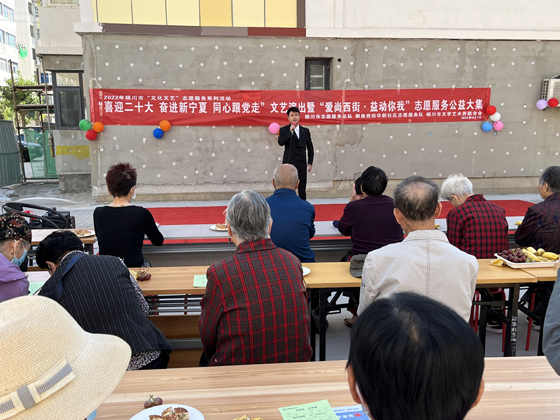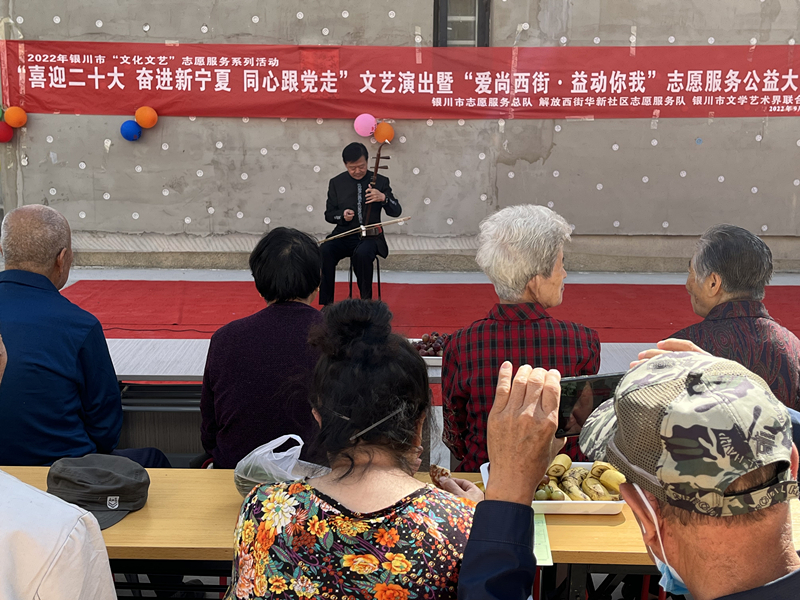 近年来,银川市文联在积极组织党员干部参加社区环境整治、疫情防控等常规性志愿服务活动的同时,充分发挥自身特色,组织文艺家走进社区,为社区居民开展书法、美术、歌曲、舞蹈等文艺培训,讲艺术党课,送图书、送戏、送文艺演出等文艺惠民活动,丰富和提升社区居民的精神文化生活,助力社区基层市域治理工作,发挥了自身应有的作用。