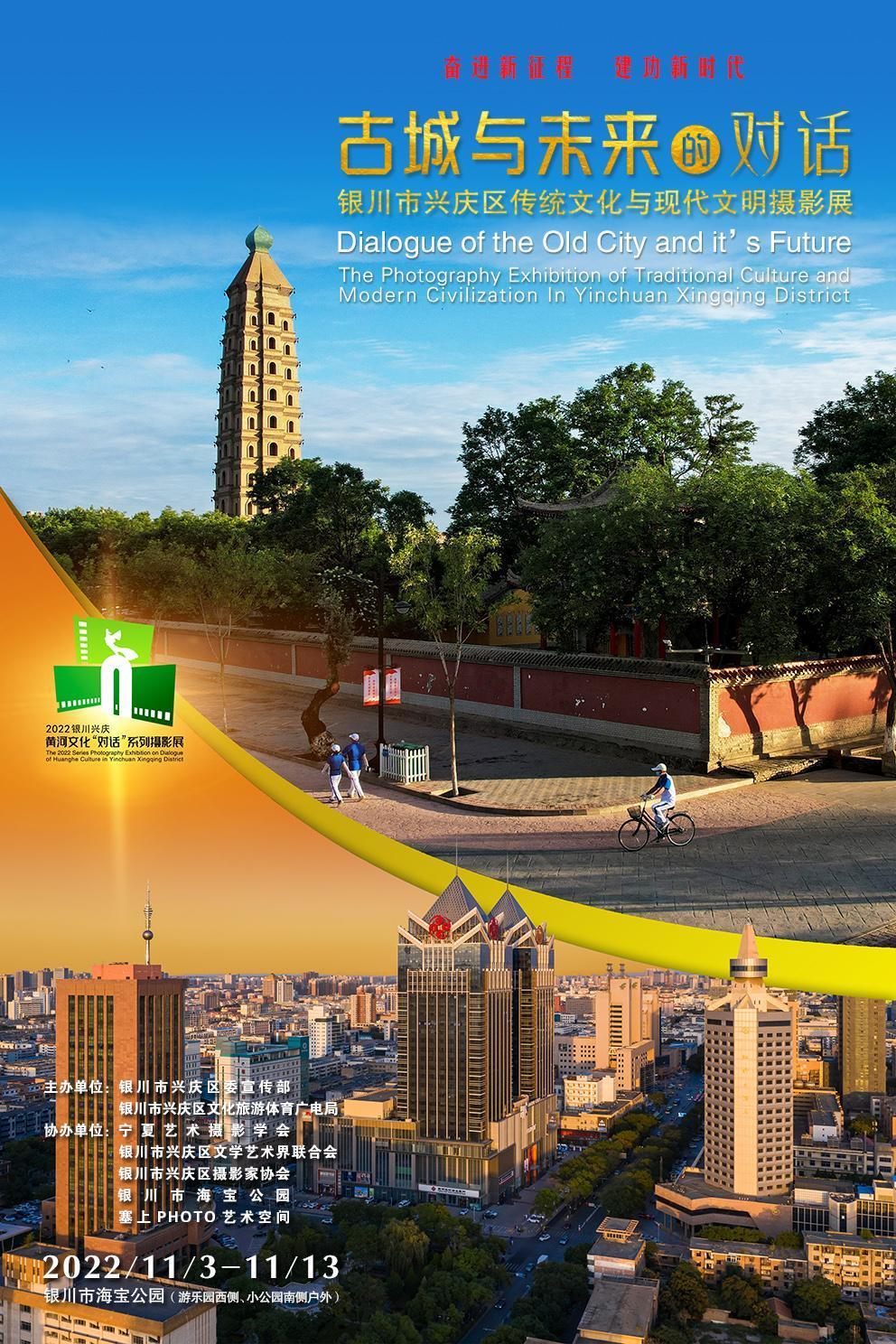 11月3日,由银川市兴庆区委宣传部、兴庆区文化旅游体育广电局主办的“古城与未来的对话一﹣银川市兴庆区传统文化与现代文明摄影展”在银川海宝公园内展出,吸引周边群众驻足观看。