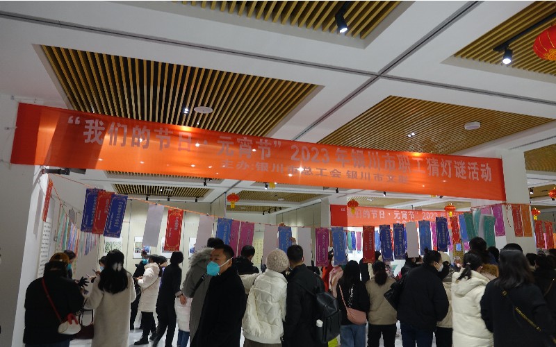 在新落成的银川工人文化宫,正进行着一场颇具趣味的灯谜猜射活动,人头攒动。市文联以元宵节为契机,用灯谜把学习宣传党的二十大精神与“我们的节日”系列活动结合起来,让古老的灯谜艺术在新时代焕发生机。500条以党的二十大精神关键词为谜底的原创谜题,让现场群众脑力全开,有的对着谜条冥思苦想,有的你一言,我一语,合作猜谜,灯谜老师为大家解读谜底,更是赢得群众的一阵喝彩。市民张女士表示,这次的谜语很多的出得非常妙,比如“常存抱柱信(打一3字二十大词语)“这条,就很生动,跟朋友讨论谜底,是一件非常愉悦的事情。