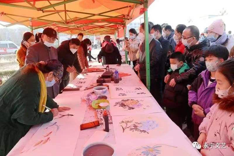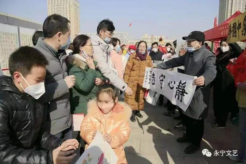 活动当天,永宁县文联还组织书法、美术、摄影等协会会员,在广场上为前来观看主题展览和社火展演的群众送字画、拍摄全家福,50多个家庭在“强国复兴有我”主题展览的背景前留下了全家人共度元宵佳节的幸福瞬间,永宁县委宣传部还将臻选10幅具有代表性的“全家福”照片制作成精美摆台,赠送给参与活动的群众。