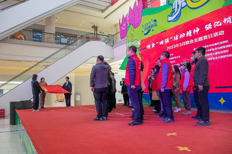为深入学习宣传贯彻党的二十大及全国两会精神,大力弘扬雷锋精神,进一步发挥党员干部在“强素质、强服务、强担当、强斗志”能力作风建设年活动中的先锋模范作用,切实增强基层党组织政治功能和组织功能,按照《关于在市直机关开展三月份“支部主题党日”活动的通知》要求,3月17日,由银川市文联党支部牵头,联合银川市商务供销机关党支部、新百集团总部党支部、银川市音乐家协会功能型党组织、银川市曲艺家协会功能型党组织、银川市杂技家协会功能型党组织、银川市朗诵艺术家协会功能型党组织、银川市摄影家协会功能型党组织、银川市文艺志愿者协会功能型党组织,走进新华百货ccpark,以“学习‘四强’活动精神,强化领跑意识”为主题,开展了3月份联合主题党日活动。