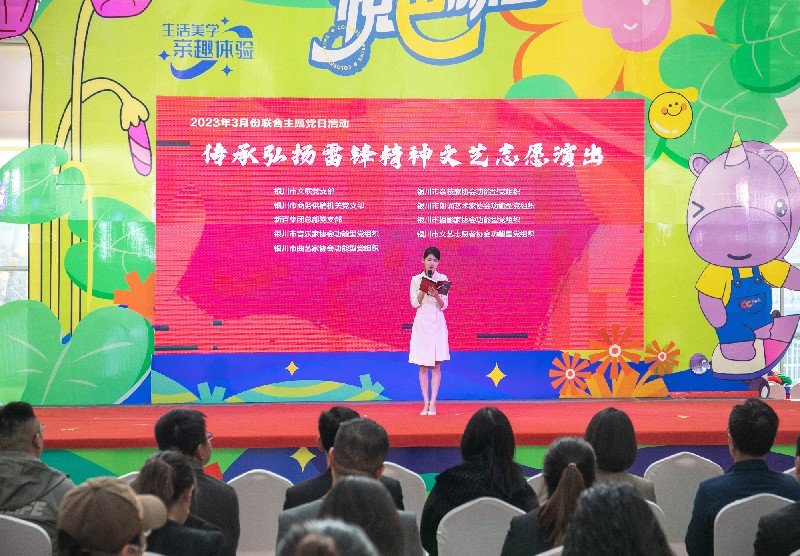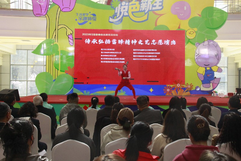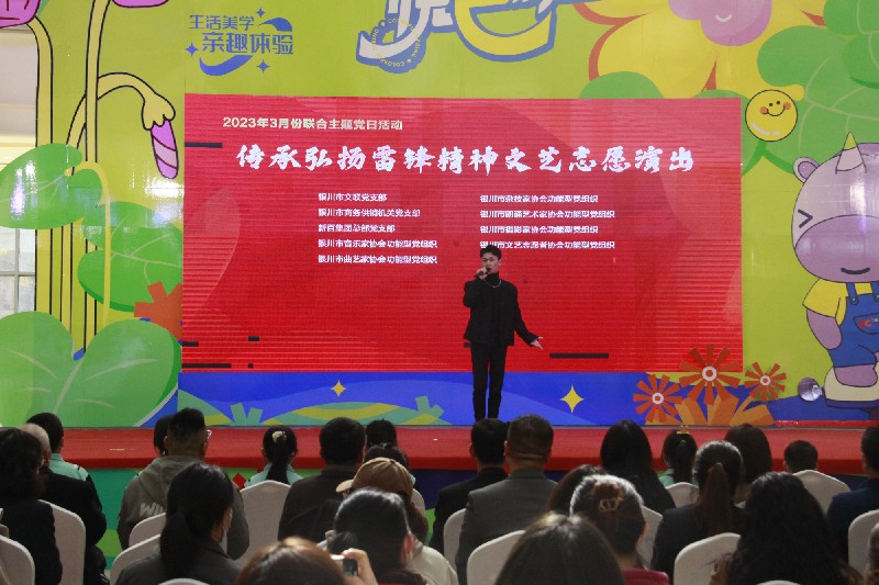 活动现场银川市文联党支部还组织文艺家开展了“传承弘扬雷锋精神文艺志愿演出”活动。歌曲《学习雷锋好榜样》配乐朗诵《雷锋日记》选读、快板《长征》、器乐演奏《送你一朵玫瑰花》、杂技《滑稽手技》、歌曲《雏菊花》用文艺的形式,让现场党员和群众不仅更真切更深入地再次感悟了雷锋精神的伟大,同时也在感动之余,获得了开心和快乐,享受了一次心灵艺术之旅。