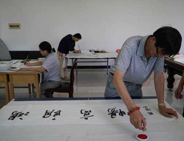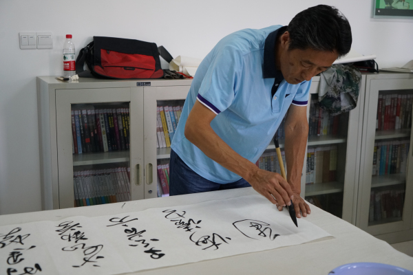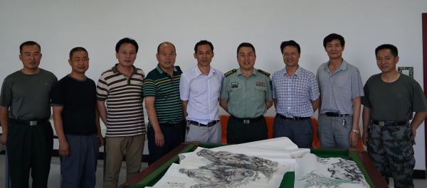 7月20日,在中国人民解放军建军89周年来临之际,银川市文联组织知名艺术家来到石嘴山军分区某部开展“书画进军营”文艺拥军活动,为官兵送去节日的祝福。