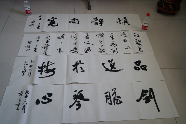 书画家现场挥毫泼墨,40余件书画作品为官兵送上了全市广大文艺工作者的美好祝福。书画家们深厚的功底、精湛的技艺,博得了在场官兵的一致称赞。某部政委汪国超在交流时说:“值建军节来临之际,各位书画艺术家来到军营现场传授技艺,留下瑰丽墨宝,让我们备受感动、倍感鼓舞。我们将进一步发扬拥政爱民的优良传统,砺练精兵为当地建设奉献力量。”