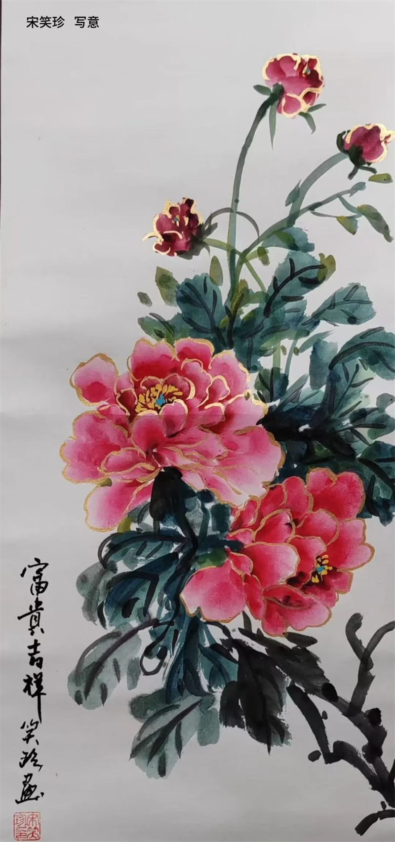 深入基层采风 捕捉自然之美。在千亩牡丹园创作现场,艺术家们通过速写、国画、油画等多种形式,聚焦牡丹形态神韵与乡村生态景观,完成40余幅写生作品。其中既有传统水墨对牡丹风骨的传神写照,也有油画作品对田园新貌的生动刻画,多维度展现金贵镇“牡丹之乡”的生态之美。