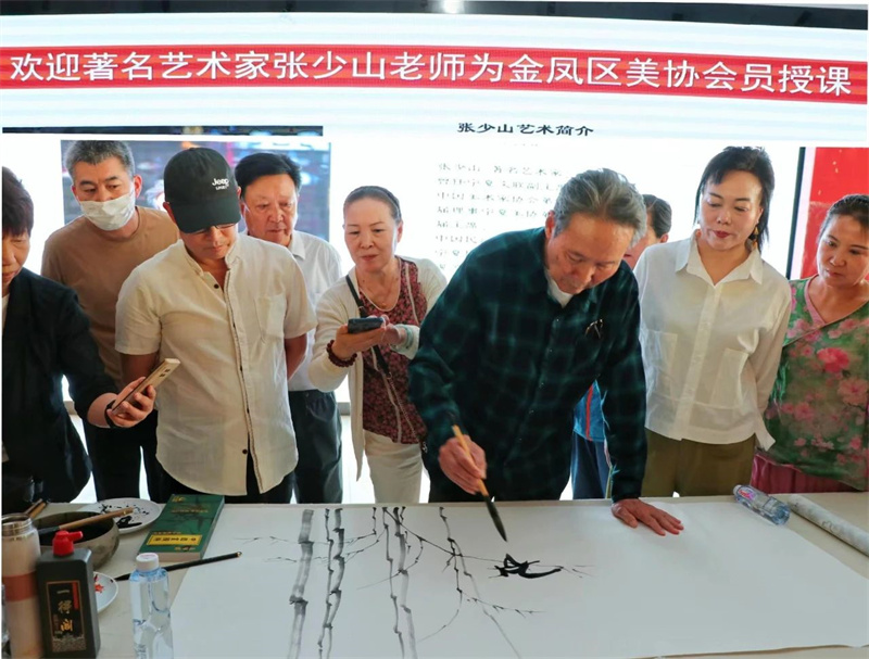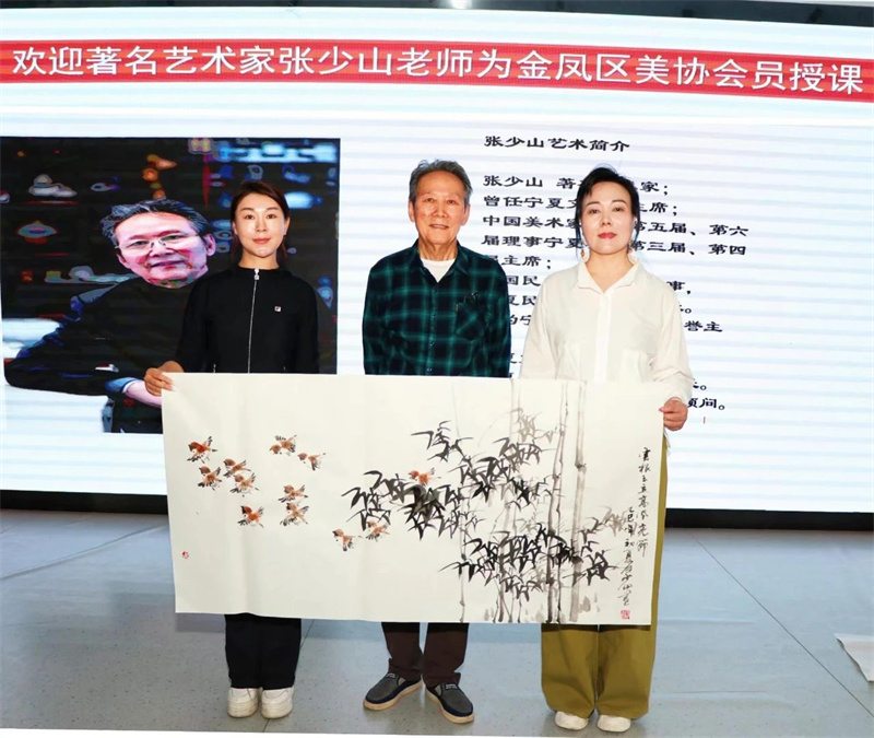 宁夏文联原副主席、宁夏美协原主席、宁夏著名国画家张少山为金凤区50余名基层美术工作者上了一堂高质量的国画讲座。