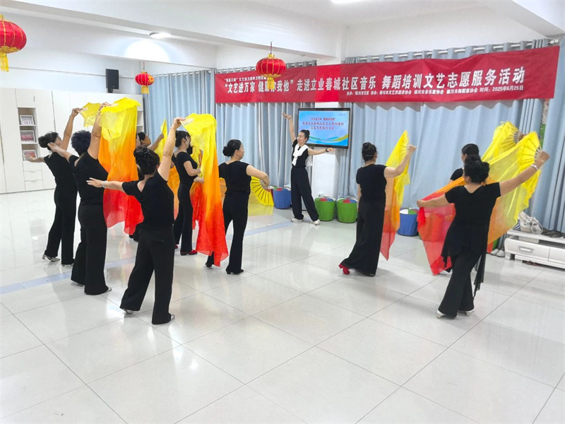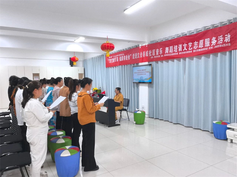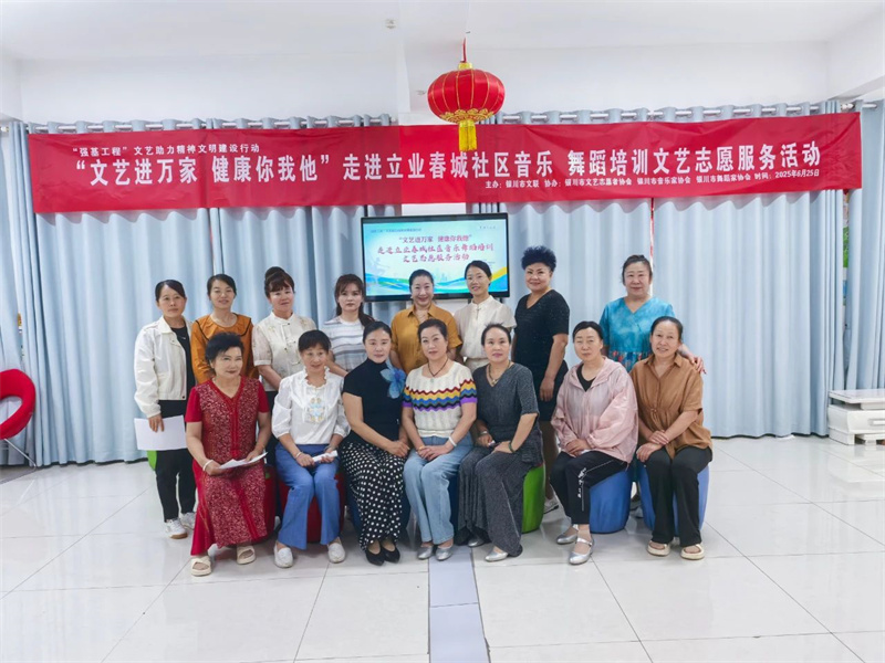 为切实提升文艺惠民服务活动的精准性,让优质文艺资源直达基层,让社区群众在家门口就能获得文艺名家的辅导,实现社区点单、文联接单,送文化与种文化紧密相连,2025年6月25日、6月27日,由银川市文联主办,银川市文艺志愿者协会、银川市音乐家协会、银川市舞蹈家协会承办的“文艺进万家 健康你我他”进社区音乐舞蹈培训暨文艺志愿服务活动在银川市文联结对社区——宁夏银川市永宁县望远镇立业春城社区成功举办。