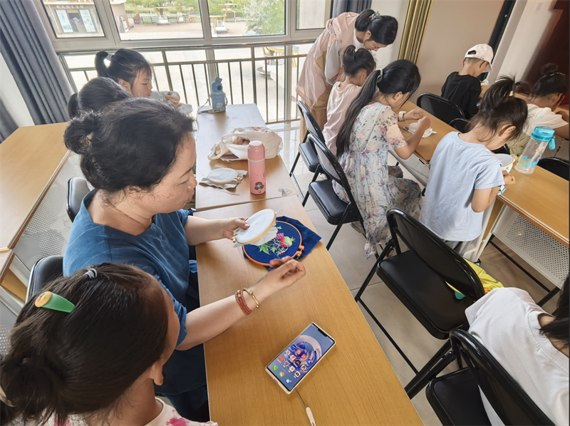 实践环节中,孩子们迫不及待地拿起针线。在老师和家长的指导下,小心翼翼地穿针引线。“老师,这个结怎么打?”“我的花瓣缝歪了怎么办?”……当遇到困难时,他们积极向身边的人请教。从纫针到缝制图案,孩子们用一针一线绣出属于自己的刺绣作品,亲身感受刺绣文化源远流长的艺术魅力。“原来刺绣需要这么多耐心。”一位学生感叹。