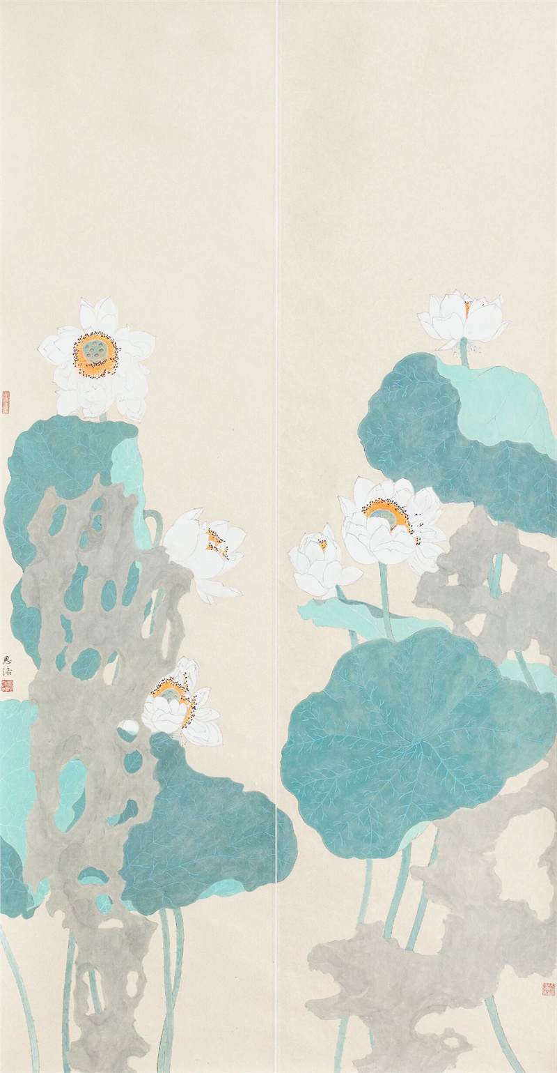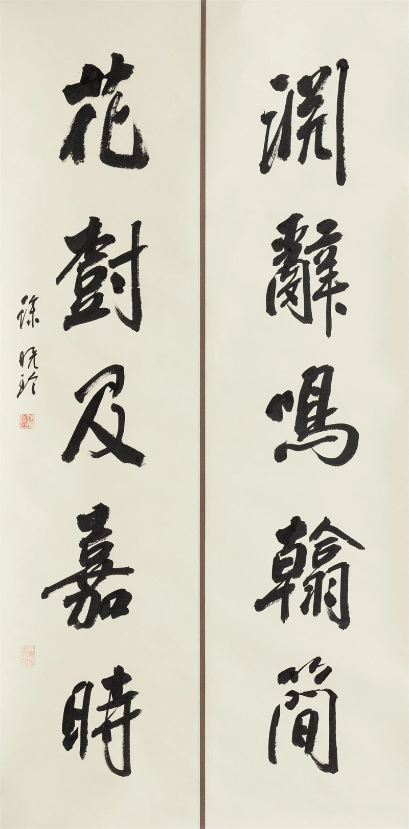 徐晓玲 《渊辞鸣翰简 花树及嘉时》 180cm×45cm×2 2025年