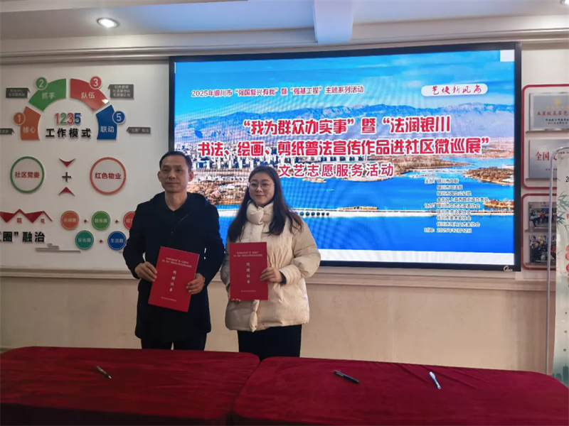 活动现场,银川市文联党组成员、副主席李德超,上海西路司法所所长金钰共同签署了艺术作品捐赠证书。