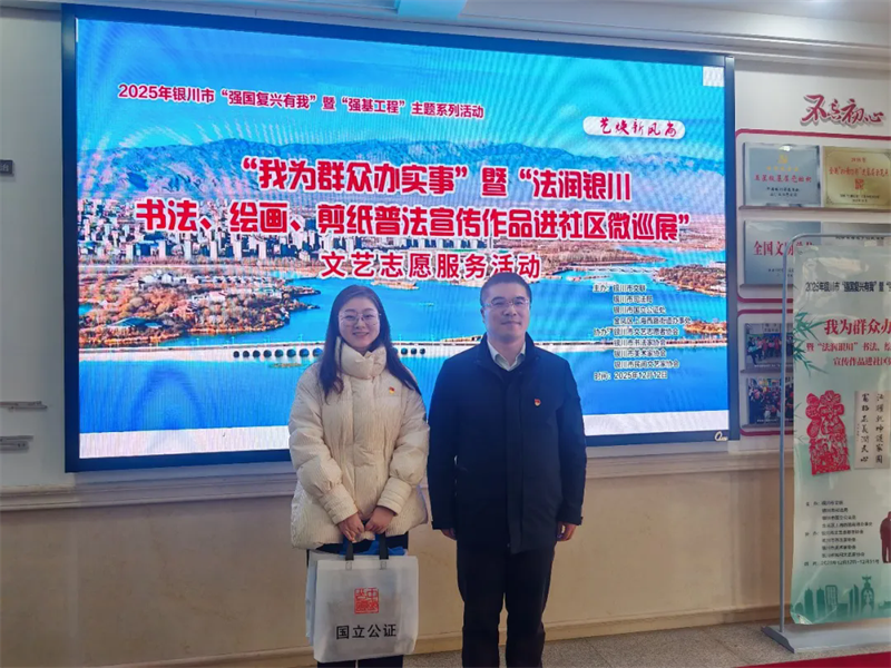 为进一步扎实做好广大党员和基层群众普法宣传工作,由银川市文联、银川市司法局、银川市国立公证处、金凤区上海西路街道办事处共同主办,银川市文艺志愿者协会、银川市书法家协会、银川市美术家协会、银川市民间文艺家协会共同协办了“我为群众办实事”暨“法润银川 书法、绘画、剪纸等普法宣传作品进社区微巡展”。
