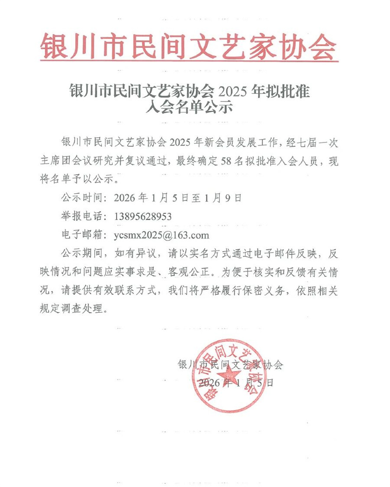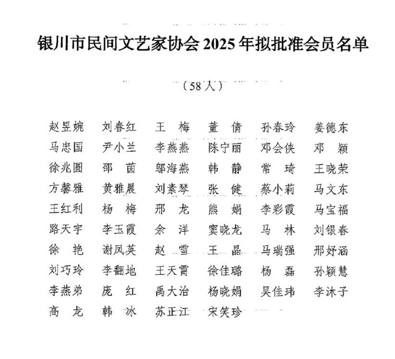 银川市民间文艺家协会2025年拟批准入会名单公示