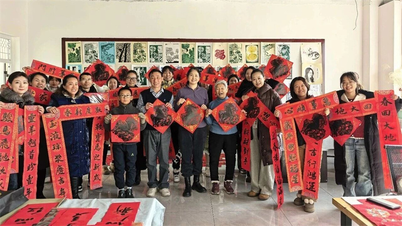 师生们手持春联喜笑颜开,节日氛围提前弥漫校园,互动间尽显温情。贺兰县美协主席陈晓莉表示,青少年是文化传承的主力军,县美协将持续推进“文艺进校园”活动,通过艺术讲座、书画比赛等多种形式,将传统文化的种子播撒在青少年心中,助力提升青少年审美素养与文化自信。