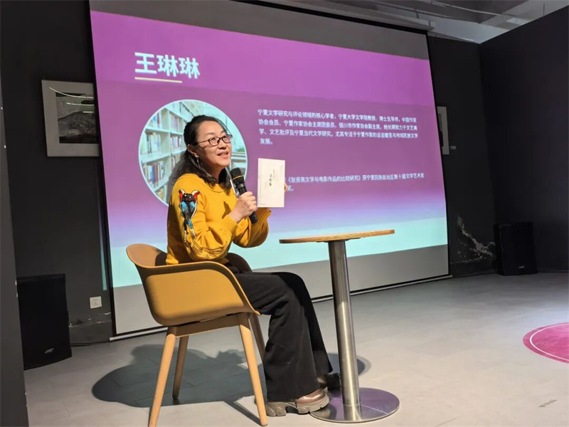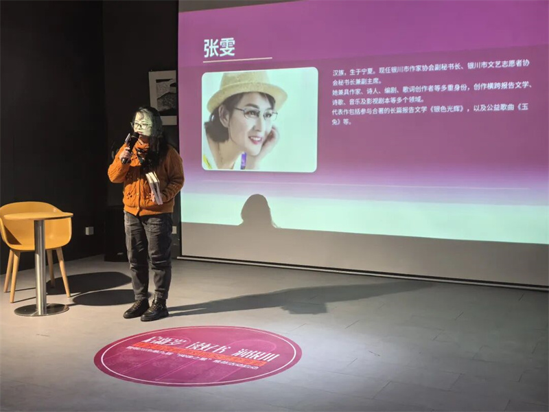 张雯则通过合著的《银色光辉》,带大家走进宁夏高新技术产业的奋斗历程。她没有堆砌宏大的时代叙事,而是把目光投向了浪潮背后的小人物。她现场朗读文中选段,那些为产业发展默默付出的身影在文字里鲜活起来。她也分享了“千名作家联千村”行动对自己的影响——只有走进基层,贴近群众,才能让文字有血有肉,有温度有力量。