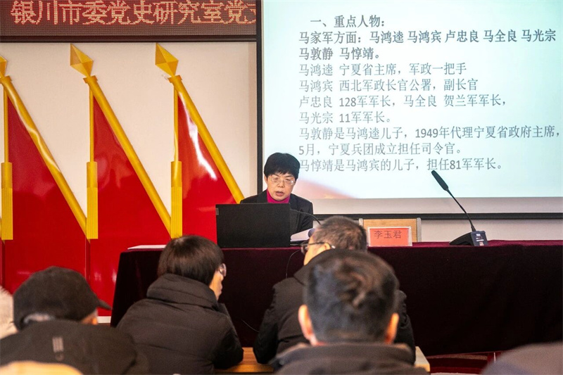 银川市委党史研究室党支部副书记、三级调研员李玉君又从“红色永宁仁存渡口、解放宁夏的最后一仗、经验与启示”三个方面,通过大量翔实的史料,细节的阐释,为全体党员作了题为《实干开新局 党史赋能乡村振兴——红色永宁仁存渡口》的十分精彩的党史专题讲座。