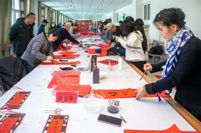 2026年丙午马年春节即将来临,为丰富村民们的节日文化生活,银川书画院青年书法家许金平,银川市书协书法家郭冀宏、汪冲、徐天云,银川市民协剪纸艺术家赵建萍、张颖珍,永宁县文联书法家赵宝权,画家王建邦、李明昆,剪纸艺术家陆天宇现场为村民们写春联、福字、国国画、剪剪纸。艺术家们全情投入,笔走龙蛇、点染色彩、剪刀飞舞,一百余幅散着墨香的红彤彤的春联、福字,十余幅牡丹、荷花等的小幅国画、颤动着红穗子的古色古香的书法中国结,一百余件“福马迎春”“一马当先”“春”字等轻盈灵动、活色生香的剪纸,不多时就摆放、悬挂了整个房间,浓郁的节日文化气息,仿佛使人恍惚明天就要过年了,让村民群众们欢乐不已。