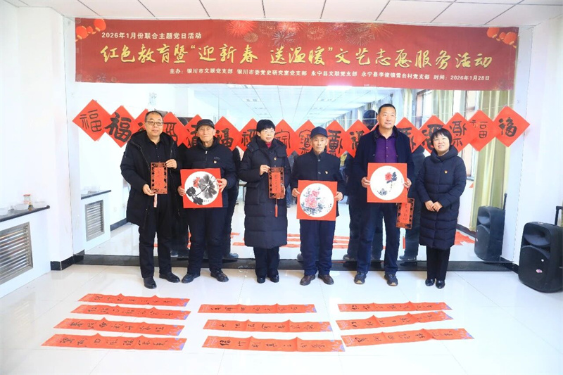 新春伊始,万象更新,为让广大党员通过红色教育,坚定理想信念,积蓄奋进力量,走进基层一线,开展写春联、剪剪纸等文艺志愿服务活动,提前为群众送上新春祝福,2026年1月28日上午,由银川市文联党支部、银川市委党史研究室党支部、永宁县文联党支部、永宁县李俊镇雷台村、东方村党支部联合举办的“深学全会精神,勇担首府使命——以高质量机关党建引领现代化塞上湖城、大美银川建设”主题党日活动在宁夏银川市永宁县李俊镇雷台村、东方村温馨举办。