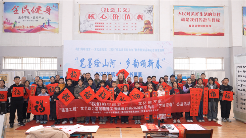 冬日暖阳照小镇,红纸墨香润民心。2026年1月28日,为丰富基层群众精神文化生活,传承弘扬中华优秀传统文化,助力乡村文化振兴,“我们的中国梦——文化进万家”西夏区文联2026年“欢欢喜喜过大年”新春特别活动走进镇北堡镇,将丰盛的文化年货和浓浓的节日祝福,送到千家万户。