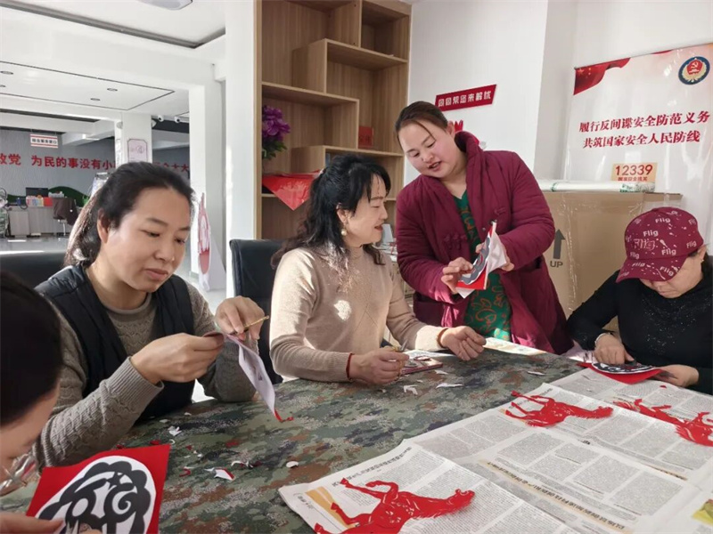 不止于笔墨送福,活动还精心设置了多项群众喜闻乐见的文艺体验项目。“来,看镜头,一家人再靠近一点,笑一笑!”在温馨的全家福拍摄区,摄影家协会的老师们架起专业设备,搭起喜庆背景,为陆续前来的家庭记录下团圆瞬间。另一侧,朗诵老师为感兴趣的居民开展朗诵基础培训课程,耐心地指导居民们掌握发音、节奏与情感表达的基本技巧,并通过经典篇目的练习,让大家感受语言艺术的魅力。而在剪纸教学台前,剪纸艺人一边展示精美的传统纹样,一边传授基本技法。居民们神情专注,指尖随着讲解轻轻转动,不一会儿,一幅幅生动的窗花便在手中悄然绽放,让传统年俗在指尖传承中焕发出新的生机。