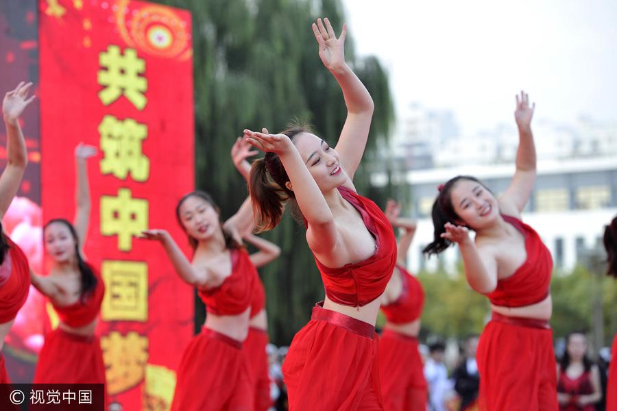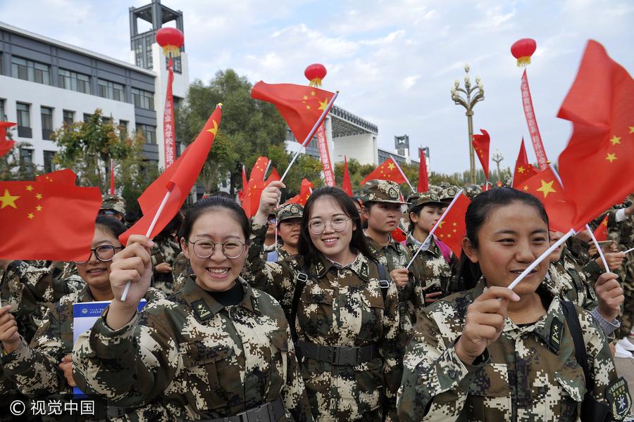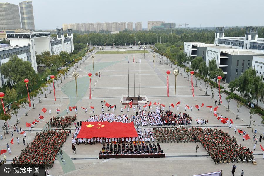 银川三千师生共同缝制巨幅国旗 喜迎党的十九大