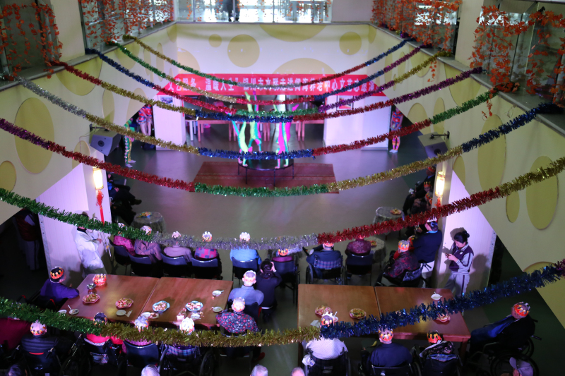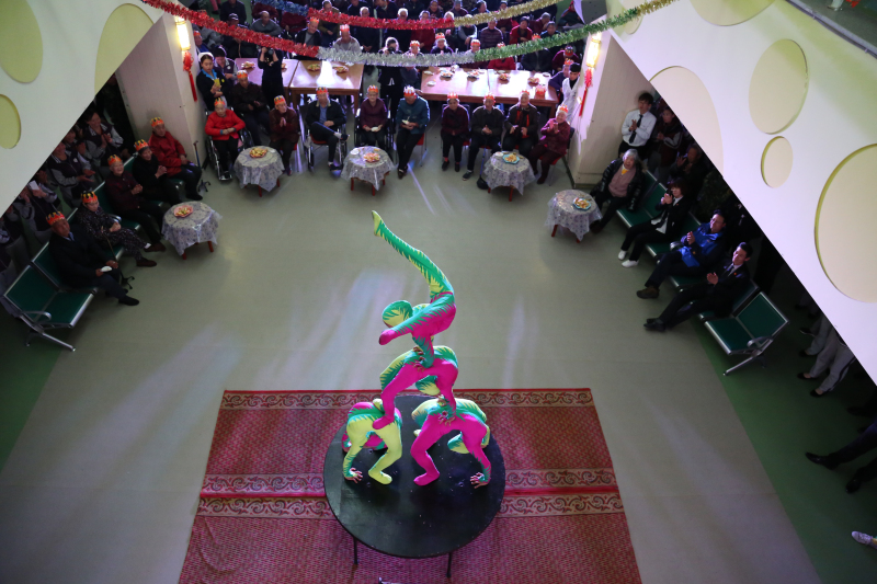 演员们满怀激情的表演了《时代欢歌》《双人滚杯》《晃梯顶技》《软功造型》等13个杂技节目,展现了力量、智慧与艺术的完美结合,为平日宁静单调的养老院增添了许多欢快喜庆色彩。