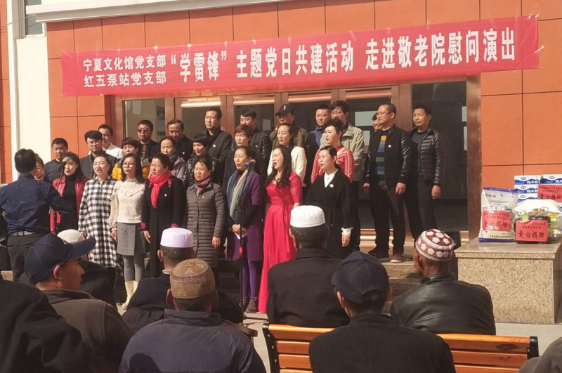 3月5日,宁夏文化馆党支部和宁夏红寺堡扬水管理处红五泵站党支部联合开展“学雷锋”主题党日共建活动, 60余名党员、团员、文艺志愿者,共同走进同心县韦州镇敬老院开展了“送温暖献爱心”活动。