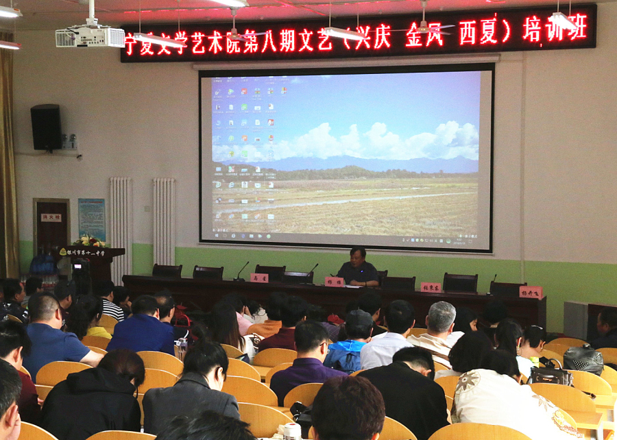 5月19日至5月20日,宁夏文学艺术院第八期文艺(兴庆、金凤、西夏)培训班在银川市第十三中学举行。来自兴庆区、金凤区、西夏区的文艺工作者、文艺爱好者100余人参加了培训。宁夏文学艺术院院长杨梓、副院长马星、银川市文联党组书记张秉东、秘书长李德超出席了开班式。张秉东书记、杨梓院长作开班讲话,副院长马星主持开班仪式。