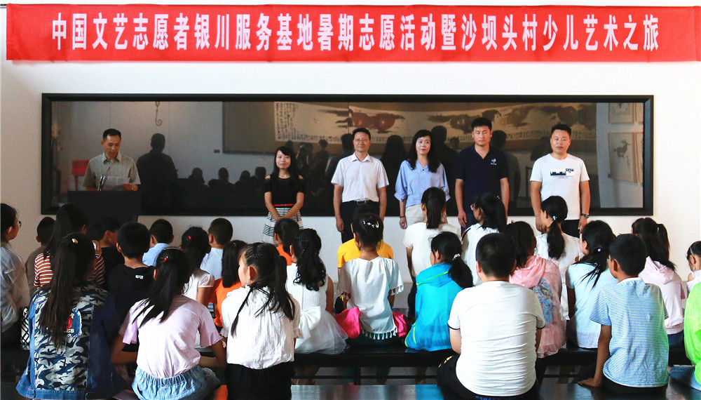 8月8日,由宁夏文联、银川市文联、银川韩美林艺术馆联合主办的中国文艺志愿者银川服务基地暑期志愿活动暨沙坝头村少儿艺术之旅在银川韩美林艺术馆举办。